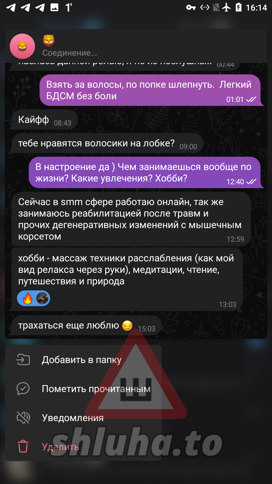 [ подключение к архиву ] [ проверка целостности файла ] [ найден объект: профиль shluha ] [ статус: ДОСЬЕ ОТКРЫТО ]