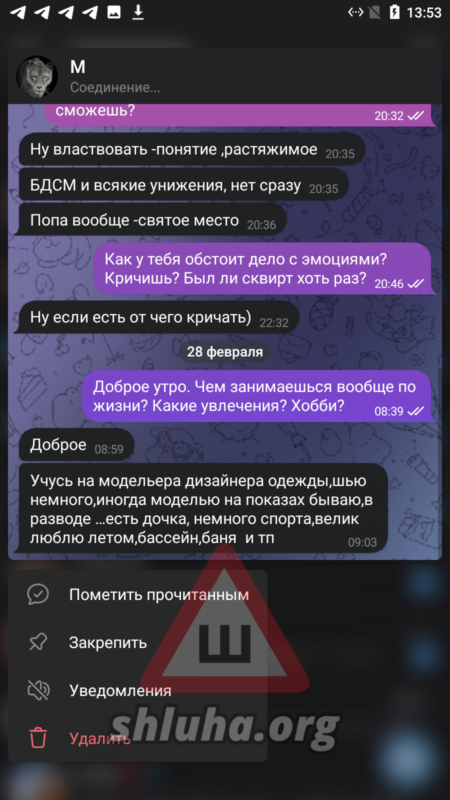 [ подключение к архиву ] [ проверка целостности файла ] [ найден объект: профиль shluha ] [ статус: ДОСЬЕ ОТКРЫТО ]